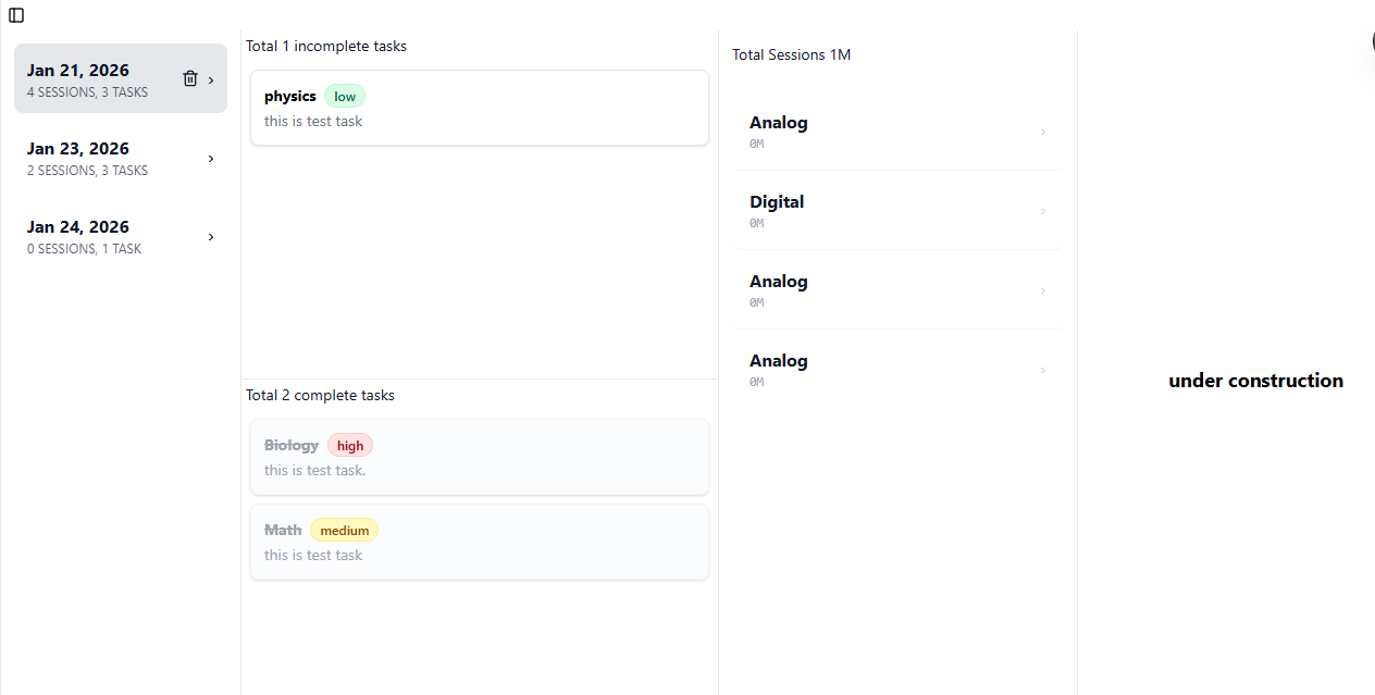 Use the Analog timer for short sessions under one hour. It's perfect for getting started, avoiding procrastination, and staying consistent without feeling overwhelmed. Small sessions reduce mental resistance and help you build momentum.